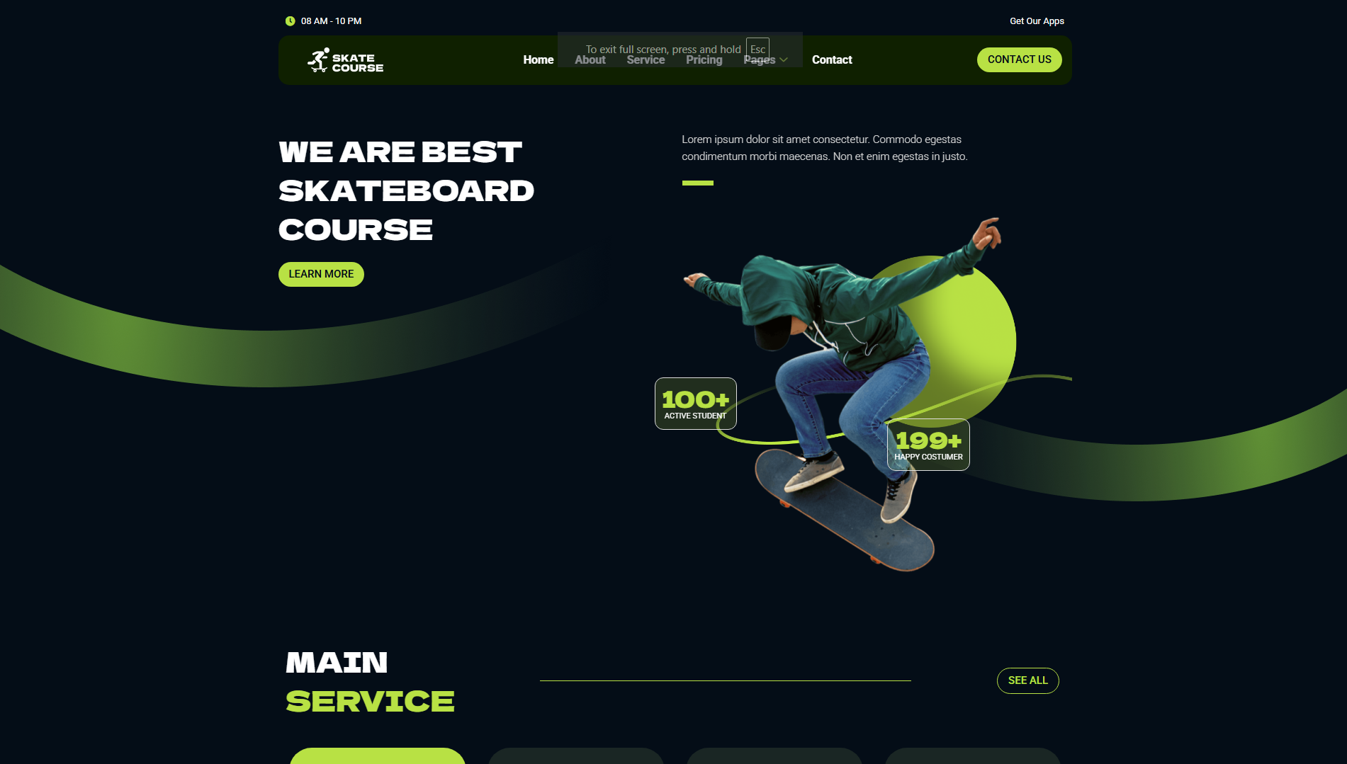 I designed a dynamic website for Skate Course, a company teaching people how to skateboard. The layout is energetic and easy to navigate, showcasing their classes, trainers, and booking options in a simple, engaging way.
